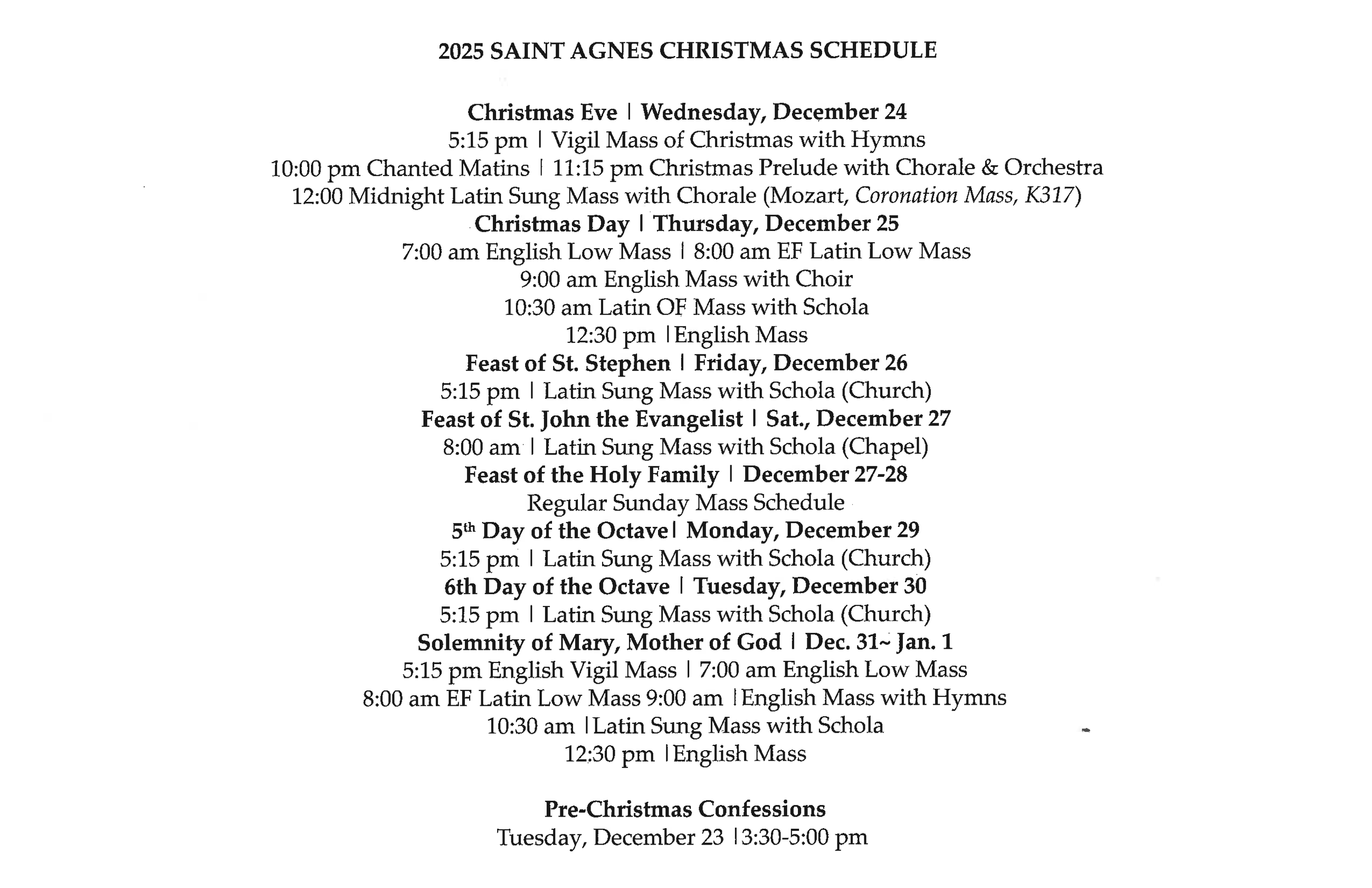 Saturday: 8:00 AM Latin Mass with Schola (Chapel)